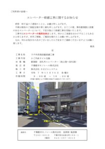 HOME > おしらせ > 都賀駅改札外エレベーター停止のお知らせ > 【券売機付用】EV修繕工事のお知らせ