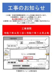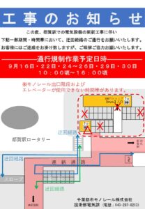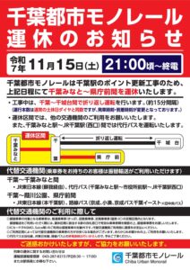 HOME > おしらせ > 千葉駅ポイント更新工事に伴い、一部列車を運休いたします。 > 20250917千葉都市モノレール様_告知チラシ-表-