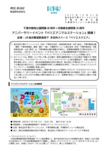 HOME > イベント > 千葉市動物公園開園40周年×京葉線全線開業35周年アニバーサリーイベント『ペリエアニマルステーション』開催! > FIX【プレスリリース】_20251031配信_アニバーサリーイベント『ペリエアニマルステーション』開催