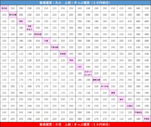 HOME > おしらせ > 消費税率改定に伴う運賃変更の許可申請について > 20190701申請定期運賃表