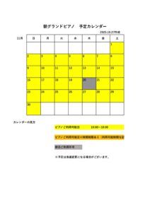 HOME > 千葉駅グランドピアノ「モノちゃんピアノ」情報 > 11月駅ピアノカレンダー