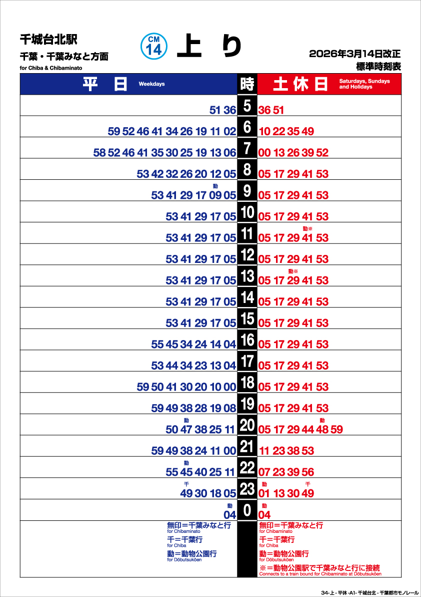 千城台北駅 上り 202603改正時刻表