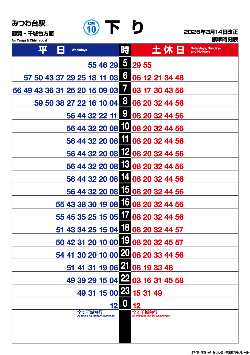 みつわ台駅 下り 202603改正時刻表