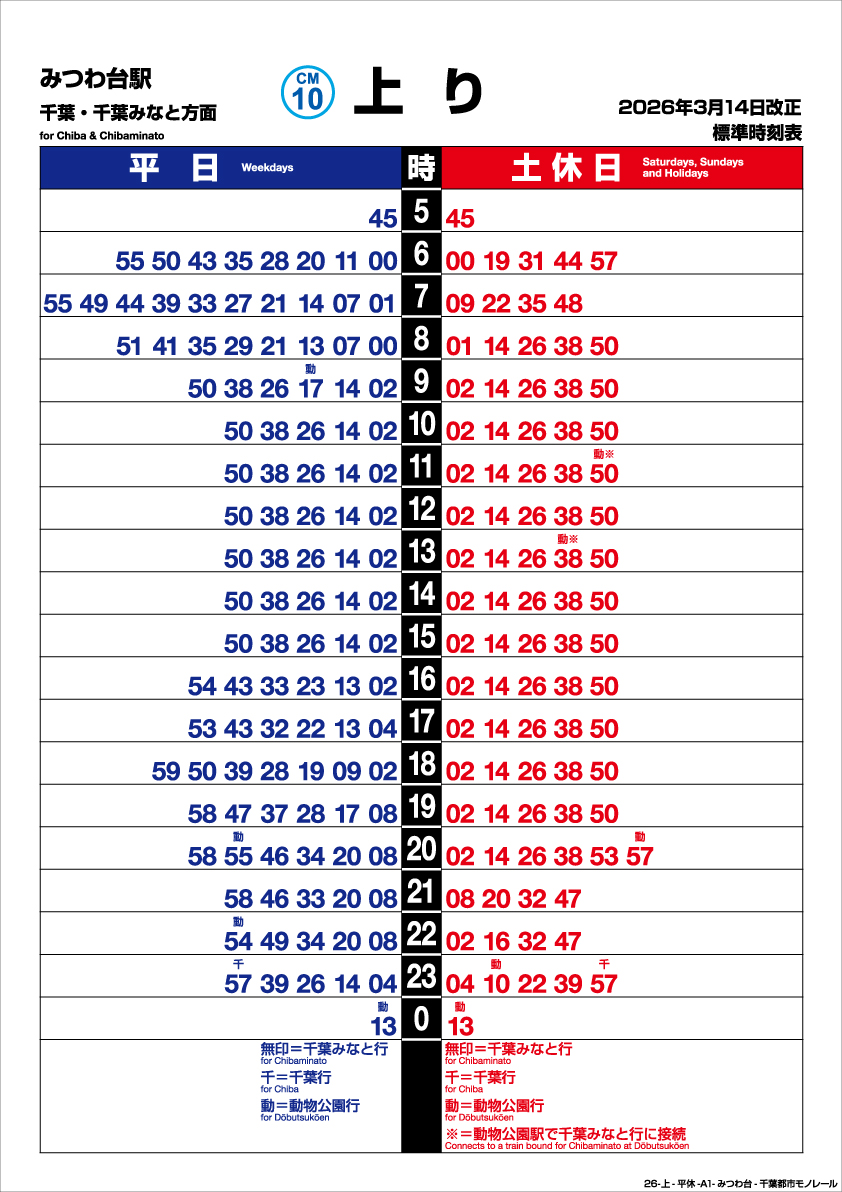 HOME > 駅情報・時刻表 > 駅情報 > みつわ台 > みつわ台駅 上り 202603改正時刻表