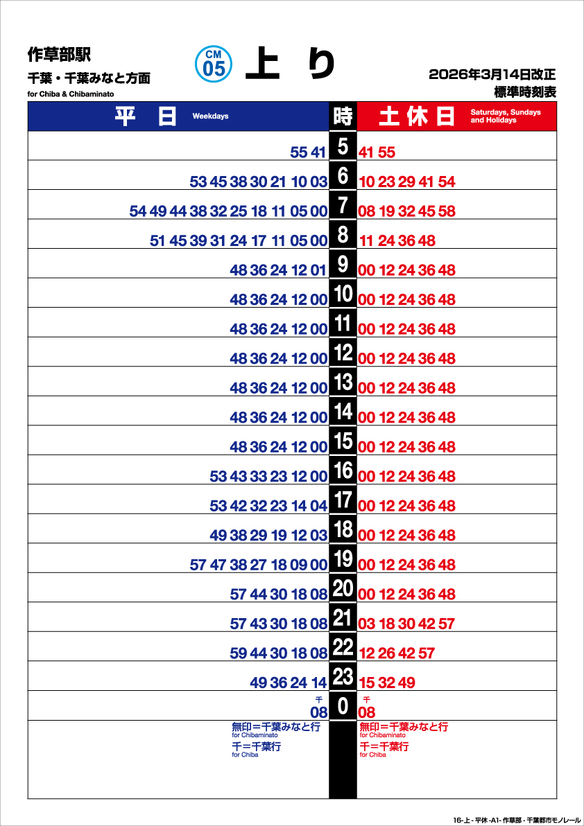 作草部駅 上り 202603改正時刻表