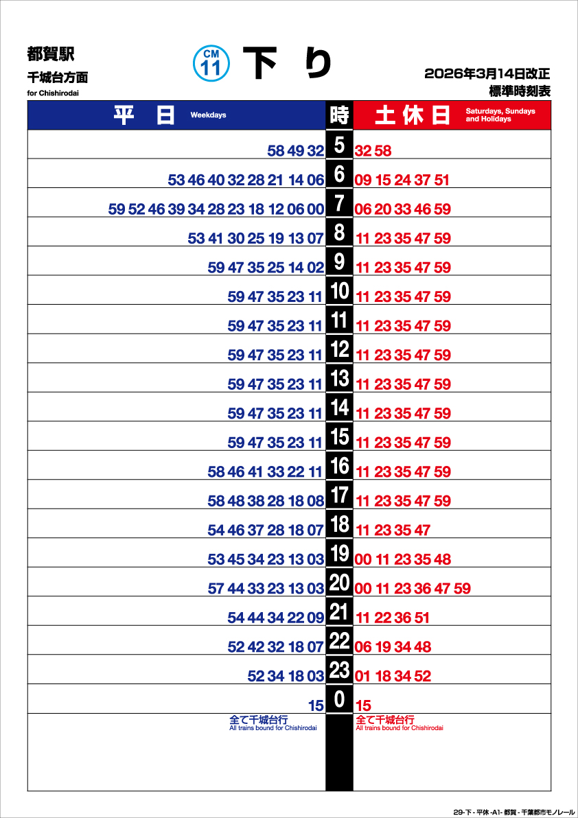 都賀駅 下り 202603改正時刻表