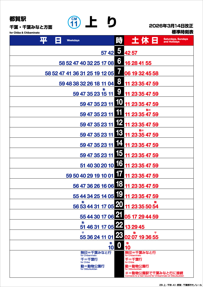 都賀駅 上り 202603改正時刻表