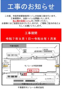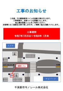HOME > おしらせ > 市役所前駅トイレ改修工事のお知らせ(工期の延長について) > ヤクトイレ工事周知ポスター
