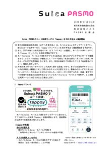 HOME > おしらせ > Suica・PASMOのコード決済サービス「teppay」を2026 年秋より提供開始 > Suica・PASMO のコード決済サービス「teppay」