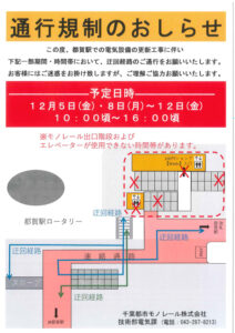 HOME > おしらせ > 都賀駅改札外エレベーター停止のお知らせ > 【券売機付用】EV修繕工事のお知らせ