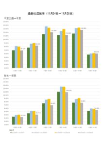 HOME > おしらせ > 混雑状況について > 乗車率グラフ(2025.11.10- 2025.12.05)