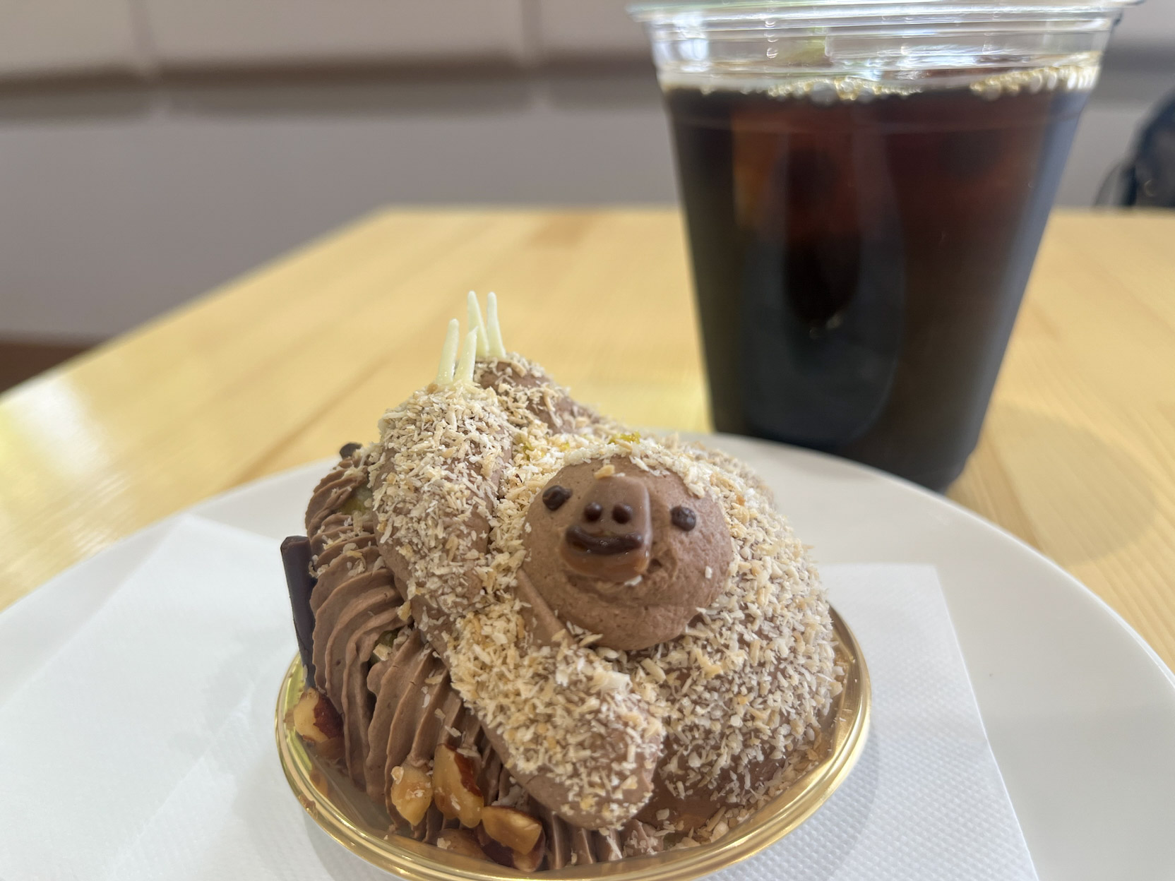 名物のナマケモノのケーキは、SNS映えする可愛さです。オレンジピールがアクセントのチョコレートケーキは、見た目だけでなく味も抜群ですよ。