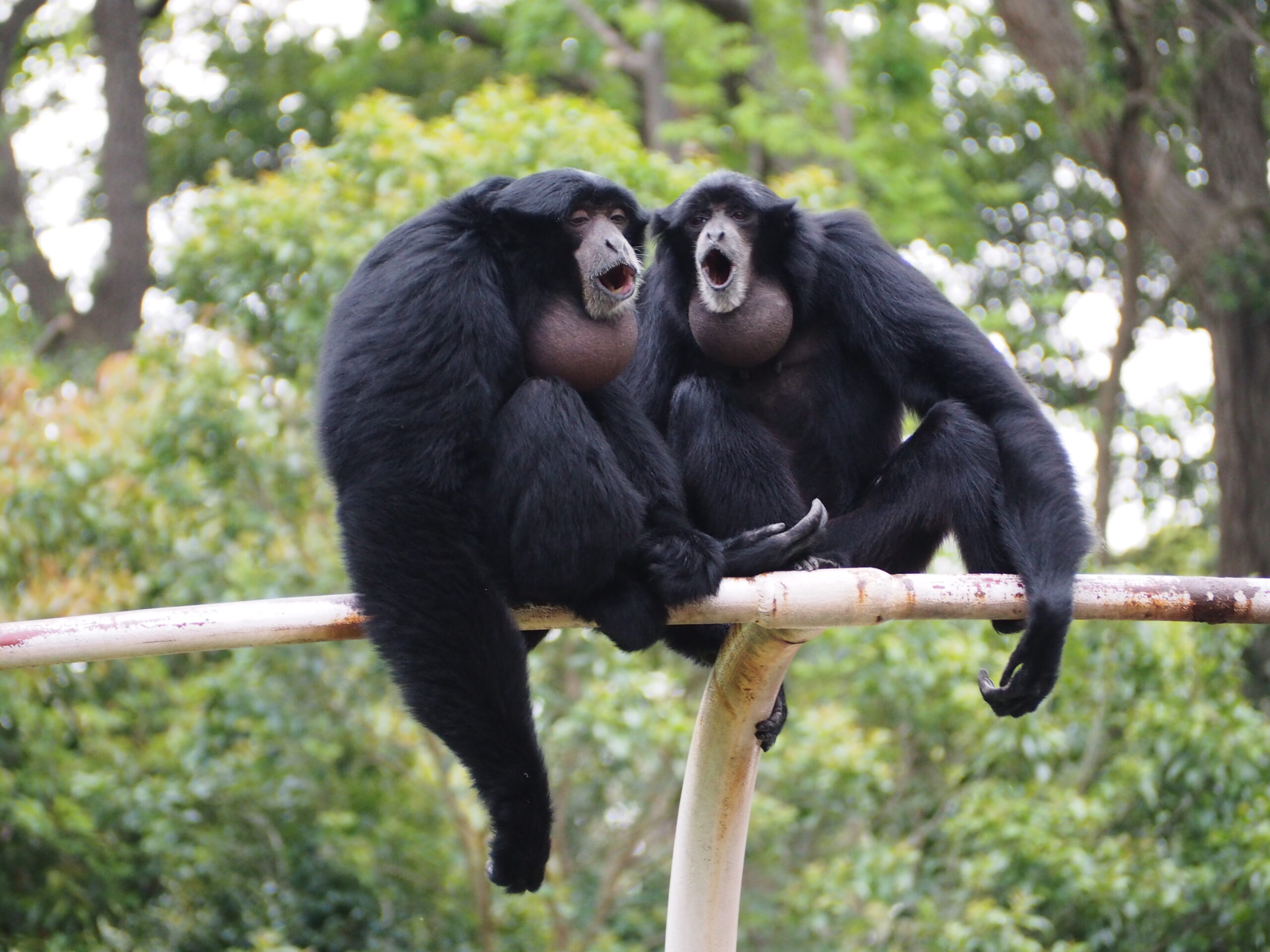 大きな声で鳴くフクロテナガザルは、そのユニークな声で子どもたちの笑いを誘います。