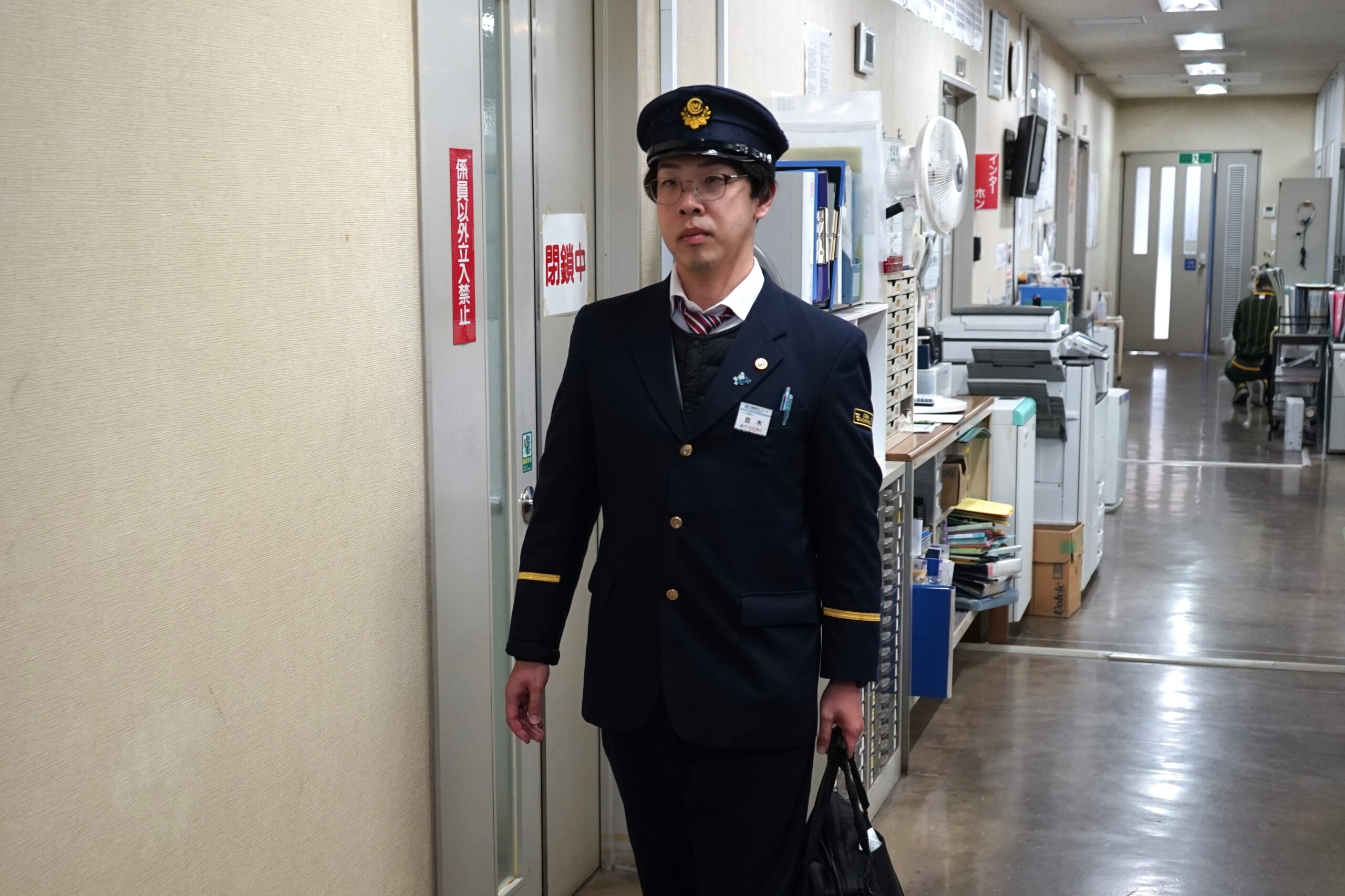 まだ外が暗いうちに起床し、点呼を受けて乗務へ向かいます。始発の時間帯は、駅構内もまだ静かです。
